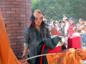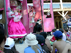 Cette fois l’entrée du camion se fait sans problème. Chouette. Mais son hayon est en panne. Bon. Nanterre grisonne. Gros programme. Chacun prend ses marques sur la pelouse. Au passage, on apprend que Jean-Louis, le régisseur général de Parcs en Fête est aux urgences. On pense à lui. Sa haute stature et sa voix éraillée nous manquera dans le paysage de cette journée. Nous nous sommes préparés pour enquiller les saynètes et péremptions sans déplacement. Le ciel se dégage. Les spectacles démarrent. Petit public au début qui grandira énormément. Un public populaire, bien moins sage que sur les deux précédents parcs où nous avons joué. J’ai le temps de jeter un œil sur Port’Nawak, une création courte et absurde de la cie Progéniture, qui me réjouit fort au passage et c’est parti. Un monde fou qu’il faut asseoir du mieux que possible avec vélos et poussettes placés n’importe comment. Olivier a commencé ses déclarations et s’essaye sur Fred Ford de la Cie Annibal qui, tout occupé à ordonner le public, se fait surprendre. Ça parle fort autour, dedans, un bruit ambiant énorme et il faut beaucoup de conviction aux comédiens pour s’imposer. Au coeur du public, un chœur de spectateurs attentifs, bien placé, dont l’attention nous permettra de résister aux aléas -Les aléas jactent à l’aise, à Nanterre-. Introduction ; première maison. Patrick a retravaillé sur quelques accessoires de la maison marron et celle-ci devient plus claire et nettement plus fluide. Péremption de la romancière et du domestique. Toujours dans un vacarme ambiant et des déplacements incessants, cette fois autour des maisons et sans faire attention à ce qui se passe. La maison Rouge ensuite, qui va monter en tension et commencer à susciter des remous approbateurs lorsqu’il se met à insulter les voisins. Surprise générale avec la transformation de la chimère et regards amusés sur l’enfer de ce pauvre Red. Il y a des araignées, des serpents : on est dans un territoire connu. Il y a toujours du boucan mais on n’y fait plus attention. Péremption de la maman qui touche beaucoup et de plus en plus efficacement peut-être parce que c’est un enfermement très proche de beaucoup de gens. Les tireficelles commandent : « Pivotez ! » et Rosa Rose fait son entrée. « Oh qu’elle est jolie » se chuchotent certains enfants au début. « On dirait une sorcière qui aime bien les adultes mais pas les enfants » ça évolue. Et l’histoire se déroule, désarçonnante, laissant bouche bée la plupart. Un enfant dira : « moi je ferai jamais ça à mon chat » tandis qu’un père interrogeant son fils : « tu crois qu’en mettant le cœur d’un chat dans une poupée elle va vivre ? ». Le sniper intervient pour contester l’horreur de cette présentation mais pour la première fois, il ne suscite pas un ras de marée d’approbation. Péremption de la châtelaine qui peine à trouver sa cible mais en trouve une fort conciliante. Et c’est la dernière saynète avec Solo Amarillo. La sono démarre, s’arrête, redémarre, s’arrête. Aïe ! léger flottement que Jacot va tenter de remplir intelligemment. Enfin ça part mais le rythme s’est un peu perdu. Intervention et chanson finale des tireficelles. Applaudissements. Intervention d’Olivier qui là aussi se fait un peu contester puis il salue, chaleureusement applaudi. Une spectatrice près de moi s’adresse à sa petite fille « merci d’avoir patienté ma puce » puis à son mari « tu as vu ce spectacle ? Exceptionnel ! Il raconte l’enfermement de l’amour quand il n’est pas donné ! » Plus vite et justement résumé, je n’ai pas encore entendu. Je ne sais pas s’ils ont tous pensé ça mais c’est le genre d’écho qui fait franchement plaisir. Le gros du public continue son périple spectaculaire et nous restons là, sourire aux lèvres, discutant avec quelques spectateurs et amis qui nous font leurs commentaires. Fin d’un cycle. On ne remerciera jamais assez ceux qui nous ont permis cette année de le mener et, en particulier, Véronique Dilsot, dont le festival (parcs en fête) est actuellement menacé par un olibrius qui voudrait tout regrouper sur une même journée et même lieu. Quand on voit le public qu’elle est parvenue à drainer en quelques années, on ne comprend pas ce type de décision et on espère bien qu’il ne sera pas suivi d’effet. Quant à nous, nous allons tout remettre à plat pour aller jusqu’au bout et jusqu’à la forme adéquate au propos. Je vous tiendrai au courant. Merci à ceux qui nous ont suivis tout au long de ces chroniques. A suivre |